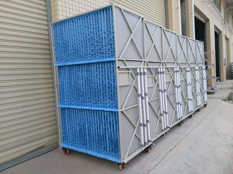 采用定制工裝車,中空板內(nèi)襯+多層布袋,60片/臺車